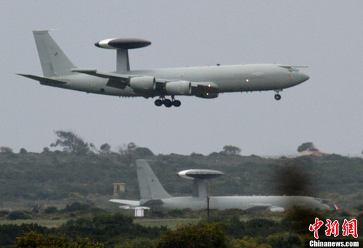 3月20日,在位于塞浦路斯的英國(guó)阿克羅蒂里空軍基地,一架英國(guó)皇家空軍飛機(jī)準(zhǔn)備著陸,另一架飛機(jī)停在后方。美國(guó)國(guó)防部聯(lián)合參謀部主任威廉·格特尼19日在五角大樓新聞發(fā)布會(huì)上透露,在第一波襲擊中,美國(guó)和英國(guó)的軍艦和潛艇向利比亞海岸的20多個(gè)防空目標(biāo)發(fā)射了112枚戰(zhàn)斧式巡航導(dǎo)彈。