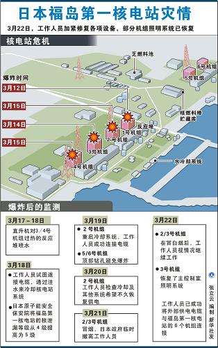 消防員和自衛(wèi)隊員當(dāng)天也繼續(xù)利用特殊泵車對4號機組的乏燃料池注水降溫。同時,3號和4號機組的照明系統(tǒng)目前已部分恢復(fù),一旦主控制室重新投入使用,工作人員就可采取更有針對性的措施進一步穩(wěn)定受損機組的狀況。但在接通電源的作業(yè)中還是出現(xiàn)了兩名工作人員受傷的情況,他們目前已被送往醫(yī)院治療。