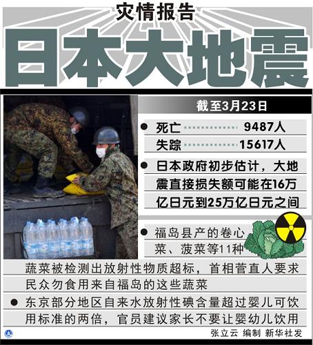 日本各地自來水及原奶和蔬菜等農(nóng)畜產(chǎn)品受放射性污染的范圍23日繼續(xù)擴(kuò)大,首相菅直人當(dāng)天首次要求人們不要食用福島縣生產(chǎn)的一些種類的蔬菜。核電站放射性污染威脅到水和食品安全,開始對(duì)人們生活造成影響。