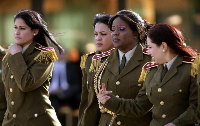 卡扎菲的“娘子軍”們個(gè)個(gè)身手不凡,槍法精湛,并且對(duì)卡扎菲忠心耿耿,不惜以死來護(hù)衛(wèi)他的安全。因此也取得了卡扎菲的絕對(duì)信任,她們被要求對(duì)卡扎菲實(shí)施24小時(shí)全天候貼身保護(hù)。想加入敢死隊(duì),必須滿足三個(gè)條件。一必須是處女,有傳言稱卡扎菲堅(jiān)持要她們對(duì)他“以身相許”。二必須是女子軍事學(xué)院畢業(yè),精通武術(shù)和槍械。三必須由卡扎菲親自從軍事學(xué)院中選拔出來,堪稱“百里挑一”。