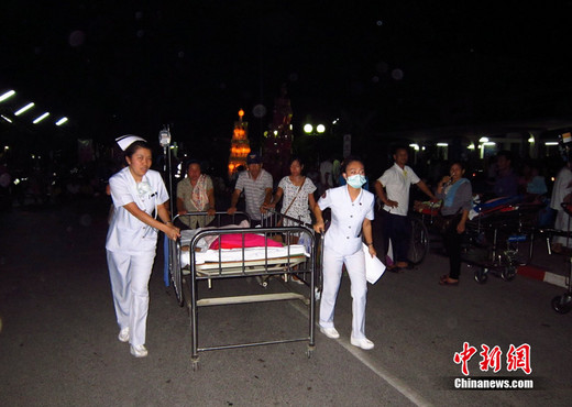 根據(jù)美國地質(zhì)勘探局地震信息網(wǎng)發(fā)布的消息,緬甸東北部地區(qū)當(dāng)?shù)貢r間3月24日晚,在相距不到一分鐘時間內(nèi)連續(xù)發(fā)生兩次7級強(qiáng)震。泰國、越南、我國云南和廣西等有震感。圖為泰國清萊震感明顯,醫(yī)院病人被疏散至室外。