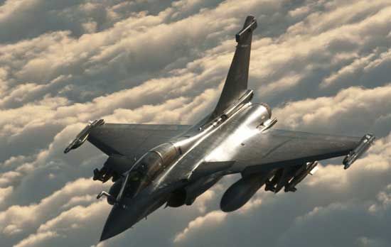戴高樂號航母上的陣風(fēng)艦載機起飛。