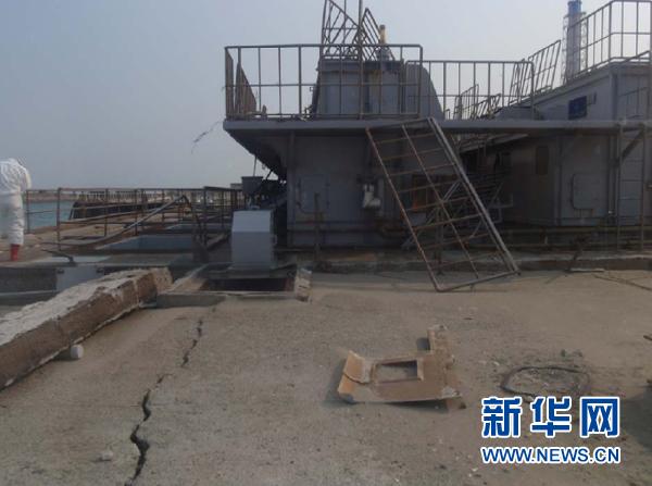 這張日本原子能安全保安院4月3日提供的照片顯示,4月2日,一條裂縫延伸至福島第一核電站2號(hào)機(jī)組取水口附近的電纜豎井旁。針對(duì)日本福島第一核電站2號(hào)機(jī)組取水口附近電纜豎井側(cè)壁出現(xiàn)的裂縫,東京電力公司3日說(shuō),采用灌注混凝土填堵的努力已告失敗,目前正將吸水膨脹的高分子聚合物注入豎井“上游”,以期截?cái)辔鬯I鲜鲐Q井側(cè)壁2日被發(fā)現(xiàn)有約20厘米長(zhǎng)的裂縫,高放射性污水從該裂縫直流入海。新華社/路透