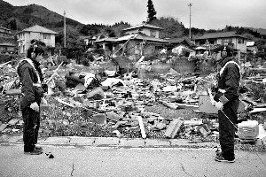 4月4日,日本巖手縣大船渡,供水系統(tǒng)調(diào)查員正在探測(cè)地下水泄漏情況。