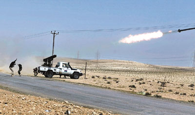 利比亞反對派向政府軍開火。