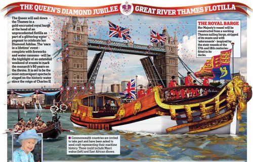 據(jù)外媒報(bào)道,英國(guó)女王將于2012年6月3日在泰晤士河上慶祝登基60周年,這將是350年以來(lái)規(guī)模最大的一次水上盛會(huì)。