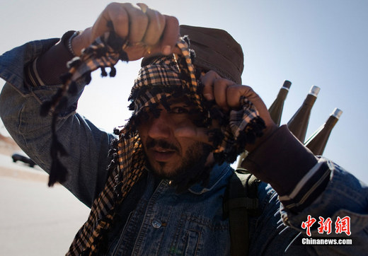 2011年3月22日,班加西南部,一名反政府武裝士兵調(diào)整自己的頭巾。