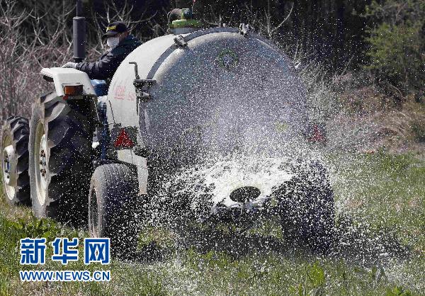 4月13日,在日本福島距福島第一核電站約50公里處的新地町的一個農(nóng)場,奶農(nóng)將鮮奶倒在農(nóng)田里。自福島地區(qū)的牛奶因?yàn)榉派湫晕镔|(zhì)超標(biāo)而被停止銷售以來,這個農(nóng)場的主人已經(jīng)向政府提交了兩次牛奶樣本,并每天傾倒約1200升鮮奶。目前,他們還沒有得到是否能夠繼續(xù)出售牛奶的答復(fù)。新華社/路透