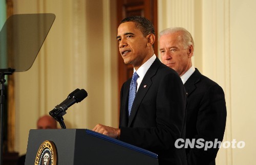 資料圖:美國總統(tǒng)奧巴馬和副總統(tǒng)拜登。 中新社發(fā) 李靜 攝