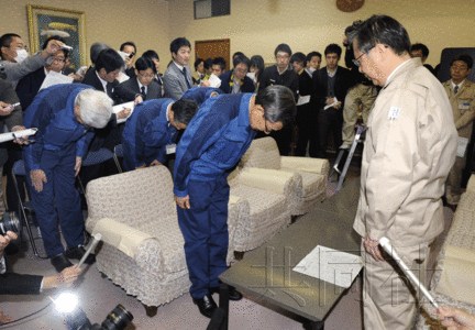 據(jù)共同社報(bào)道,東京電力公司社長(zhǎng)清水正孝22日在福島縣政府辦公樓同該縣知事佐藤雄平會(huì)面,并當(dāng)面道歉稱,“福島第一核電站發(fā)生了重大事故,給福島縣民造成了很大的麻煩,對(duì)此再次由衷表示道歉”。清水此前曾2次表示希望會(huì)見佐藤,但均遭對(duì)方拒絕,此次終于得以實(shí)現(xiàn)。