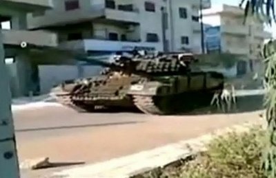 一輛在德拉街頭行駛的坦克。