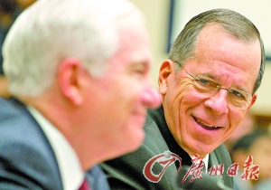 資料圖片:羅伯特-蓋茨和邁克-馬倫(右)向國會眾議院軍事委員會和參議院軍事委員會作匯報。