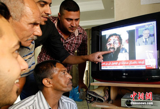 當(dāng)?shù)貢r(shí)間5月2日,伊拉克巴格達(dá),當(dāng)?shù)孛癖娛湛搓P(guān)于本·拉登死訊的新聞。