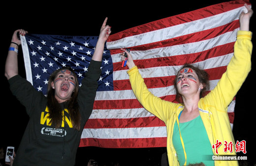 美國總統(tǒng)奧巴馬1日晚突然召開記者會,正式宣布基地組織頭目本·拉登已經死亡。在奧巴馬發(fā)表演講前后,許多美國民眾已高舉國旗聚集到白宮附近,他們高呼口號,慶祝拉登之死。 中新社記者 德永健 攝