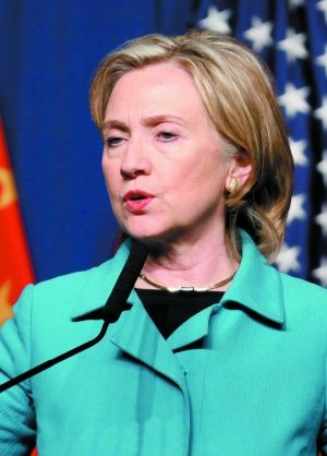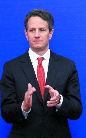 美國總統(tǒng)奧巴馬特別代表國務(wù)卿希拉里·克林頓(右二)和財政部長蒂莫西·蓋特納(右一)