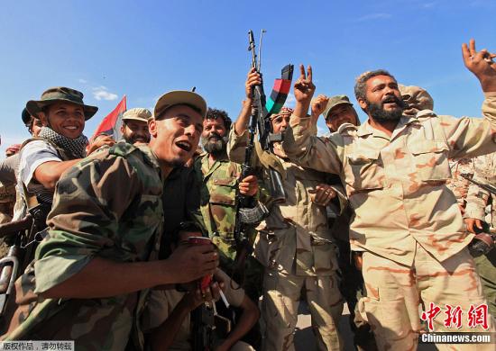 利比亞“全國(guó)過(guò)渡委員會(huì)”武裝20日稱在蘇爾特已經(jīng)俘獲了卡扎菲。據(jù)利比亞過(guò)渡委武裝一名官員稱,被俘的卡扎菲雙腿受傷。圖為 “過(guò)渡委”武裝人員慶祝攻占蘇爾特。