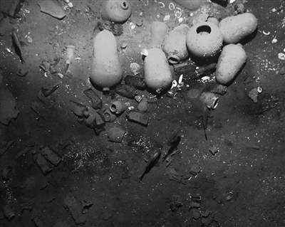 科學(xué)家利用深海攝像頭,在海底拍攝的“圣荷西”號(hào)上所載的貨物。