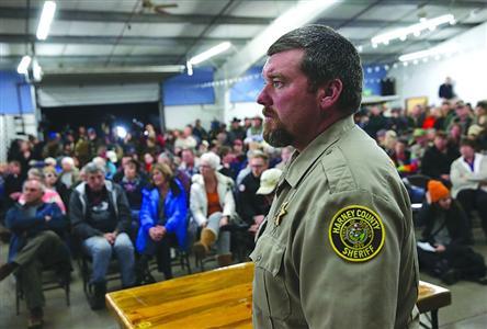 6日,治安官戴維·沃德與支持示威者的哈尼縣民眾進(jìn)行交談。/CFP