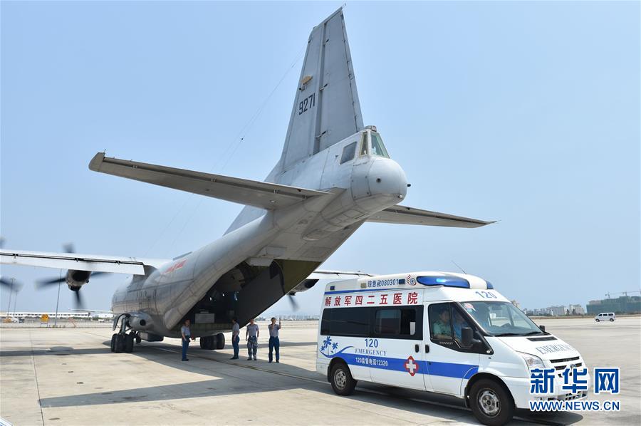 4月17日,海軍巡邏機(jī)轉(zhuǎn)運(yùn)重病工人抵達(dá)三亞鳳凰機(jī)場(chǎng)。當(dāng)日,一架正在南海執(zhí)行空中巡邏任務(wù)的海軍巡邏機(jī)緊急飛赴南沙,降落在永暑礁機(jī)場(chǎng),將李萬(wàn)美等3名重病工人轉(zhuǎn)運(yùn)至海南三亞425醫(yī)院接受救治。新華社發(fā)(高宏偉 攝)