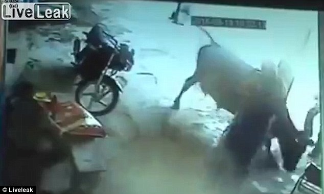 視頻中,母牛將兩人撞倒在地,并且還撞翻了他們的摩托車,防止其逃跑。西瑪在母牛的幫助下成功脫離險境,但由于之前已身中數(shù)刀無力前行,終于癱倒在地,不幸身亡。