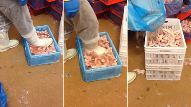【環(huán)球網(wǎng)綜合報(bào)道】據(jù)英國(guó)《每日郵報(bào)》5月17日?qǐng)?bào)道,近日,網(wǎng)上盛傳一則雞肉加工廠工人腳踩雞翅的視頻,這種不堪入目的食品加工方式引發(fā)網(wǎng)友熱議,被曝光的這家波蘭雞肉加工廠也面臨被停業(yè)整頓的危險(xiǎn)。