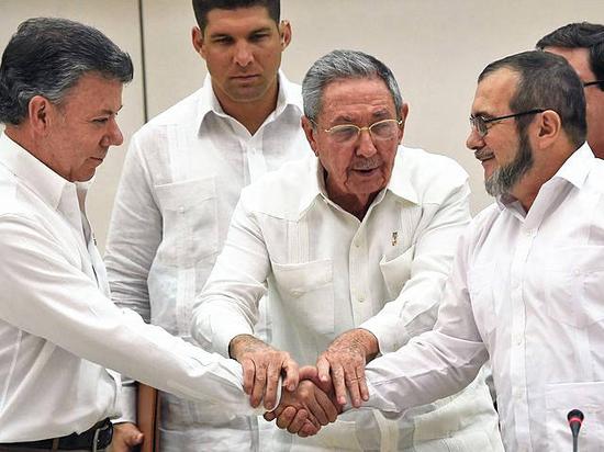 自上世紀(jì)60年代以來,“哥倫比亞革命武裝力量”與政府軍的沖突導(dǎo)致26萬人喪生,660萬人流離失所。在古巴、挪威、聯(lián)合國等多方支持下,雙方在古巴首都哈瓦那進(jìn)行了斷斷續(xù)續(xù)、歷時3年的談判,終于同意終止敵對狀態(tài)。
