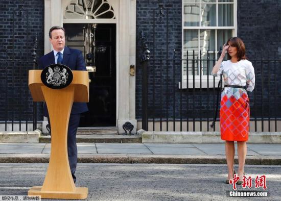 卡梅倫與妻子薩曼莎在唐寧街10號(hào)發(fā)表演講。投票結(jié)果出來(lái)后,英國(guó)外交大臣哈蒙德表示,卡梅倫在公投后將繼續(xù)擔(dān)任英國(guó)首相。英國(guó)外交及聯(lián)邦事務(wù)大臣表示,英國(guó)政府目前的任務(wù)是穩(wěn)定局勢(shì)并且以最佳的方式滿足人民的意愿。