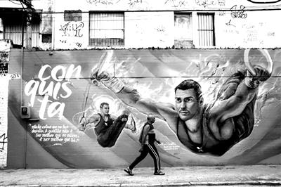 6月24日,里約熱內(nèi)盧街上的奧運會宣傳畫。2016年8月5日至21日,第31屆夏季奧運會將在巴西的里約熱內(nèi)盧舉行。新華社發(fā)