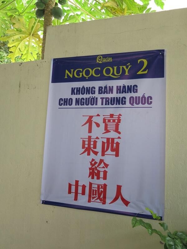據(jù)《聯(lián)合早報》援引臺灣“中央社”消息,越南中部峴港市(Da Nang)的玉貴餐廳(Ngoc Quy)在門前張貼以中文和越文書寫“不賣東西給中國人”的告示,公開拒絕服務(wù)中國游客。
