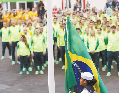 7月31日,巴西代表團(tuán)在奧運(yùn)村廣場(chǎng)舉行升旗儀式