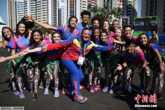 參加奧運(yùn)會(huì)的委內(nèi)瑞拉代表團(tuán)擺出pose拍照。