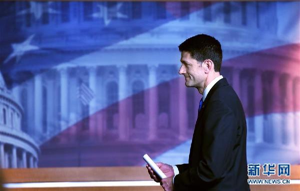 這是美國(guó)眾議院議長(zhǎng)保羅·瑞安在美國(guó)華盛頓國(guó)會(huì)山出席記者會(huì)的資料照片(2016年5月12日攝)。 新華社記者殷博古攝