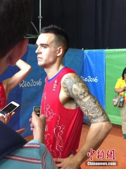 資料圖:2016里約奧運(yùn)羽毛球混雙小組賽首輪比賽,圖為愛德考克的獅子文身吸引媒體鏡頭。中新網(wǎng)記者 盧巖 攝