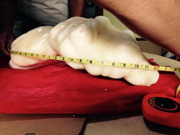 珍珠寬30厘米、長66厘米左右,此前世界上重6.5公斤、價值3500萬美元的最大珍珠在其面前相形見絀。(圖中為2.2英尺)