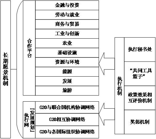 一個(gè)頂層機(jī)制是“長(zhǎng)期愿景機(jī)制”,負(fù)責(zé)制定并指導(dǎo)G20增長(zhǎng)戰(zhàn)略的實(shí)施!伴L(zhǎng)期愿景機(jī)制”的操作方式可以是先形成一份“G20經(jīng)濟(jì)發(fā)展愿景”文件,確立五年期發(fā)展目標(biāo)。此后,在領(lǐng)導(dǎo)人峰會(huì)、協(xié)調(diào)人(Sherpa)會(huì)議、部長(zhǎng)及副部長(zhǎng)級(jí)會(huì)議都經(jīng)常予以修訂并討論如何實(shí)現(xiàn)。