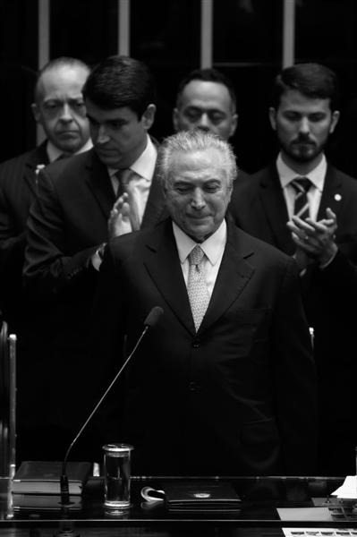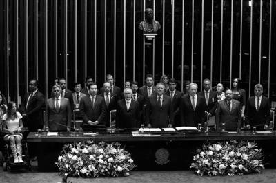 彈劾案通過后,特梅爾來到參議院,并在議員和內(nèi)閣部長的見證下,正式就任巴西總統(tǒng)。