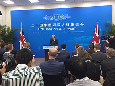 出席這次G20杭州峰會,是特雷莎·梅擔任英國首相后在國際多邊舞臺上的首次亮相。她表示杭州峰會在中國舉辦取得圓滿成功。
