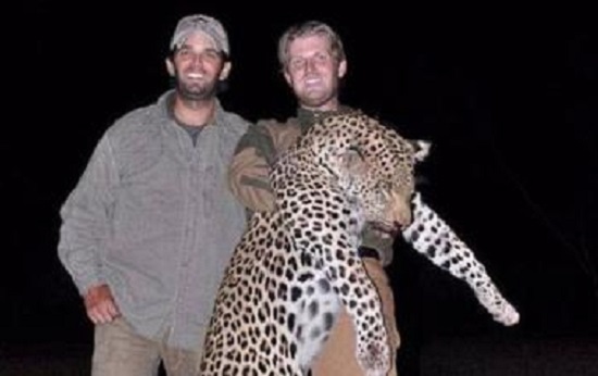 此前,我們經(jīng)?梢酝ㄟ^特朗普的兩個兒子(小唐納德Donald Jr.和埃里克Eric)在社交媒體上的照片看到他們打獵收獲的“戰(zhàn)利品”:其中有一張就是兩個人在非洲獵殺的豹子;另一張是小唐納德拿著一條他剛切下來的大象尾巴;還有則是兩個人微笑著站在美麗的水羚(waterbuck)角中間。