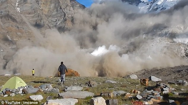 視頻中,研究員們在藏斯卡的一座山峰上調(diào)查,而雪崩突然向附近山峰襲來。雪崩降臨的那一刻,幾位研究員紛紛發(fā)出驚嘆。當(dāng)巨大的雪崩如巨怪般沖向他們時(shí),一位研究員激動(dòng)地跑去爬上雪崩處附近的巖石駐足觀看,高呼“不可思議”。