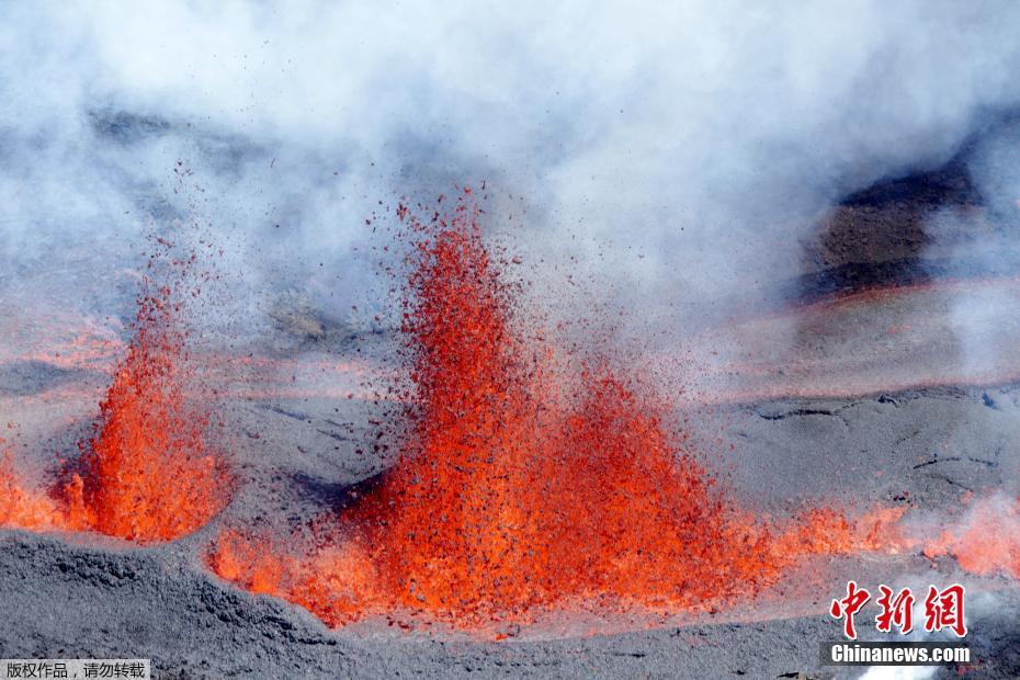 法國(guó)留尼旺島火山噴發(fā) 熔巖迸濺場(chǎng)面震撼