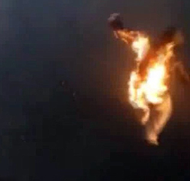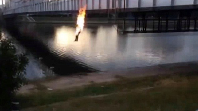 網(wǎng)上流傳著這兩名少年“自焚”的視頻。視頻中,一名男孩上身淋滿可燃液體,朋友用打火機在他的外套上點火,火苗瞬間燃遍男孩的上身,他立刻跳入河中。另一個視頻是從遠處拍攝的,拍到兩名少年一前一后跳入水中。