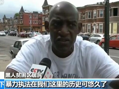去年4月,25歲的非洲裔青年格雷在美國馬里蘭州巴爾的摩市遭警察逮捕后“非正常死亡”。當(dāng)時,在美國的央視記者就曾到巴爾的摩一個典型的黑人社區(qū)去一探究竟——也許記者的探訪,能說明一些問題。