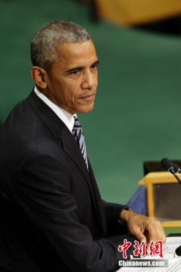 美國(guó)總統(tǒng)奧巴馬發(fā)言。 中新社記者 廖攀 攝