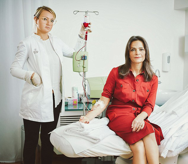 簡(jiǎn)·弗萊爾(Jane Fryer)是其中一個(gè)接受臭氧療法的患者,據(jù)稱,她本人嚴(yán)重暈血,接受治療時(shí)十分忐忑,但想到這一切都是為了內(nèi)在的美麗,為了讓血液循環(huán)重獲年輕,便覺得在所不惜。
