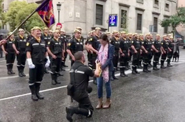 當(dāng)?shù)貢r(shí)間2016年10月12日,是西班牙的法定國慶日。這一天,一段令人感動(dòng)的視頻記錄了一次甜蜜且成功的求婚儀式。
