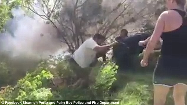 警方為了讓司機(jī)更加配合,還動(dòng)用了泰瑟槍和手銬。而且車子冒的煙越來越濃,施救刻不容緩。一位警官對堤上的圍觀群眾大喊道:“大家抓緊了,開始拉!”就這樣,由六七人組成的一條“人鏈”開始動(dòng)起來,大家最后齊心協(xié)力把該司機(jī)拉上了路堤。
