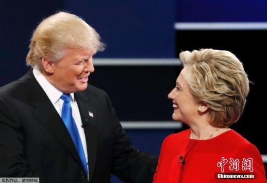 資料圖片:希拉里和特朗普在電視辯論中正面交鋒。