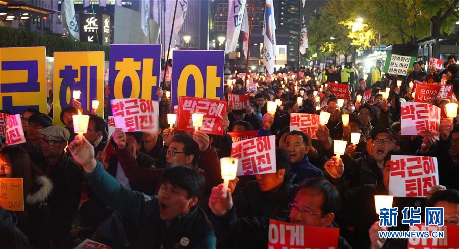 11月3日,在韓國(guó)首爾清溪川廣場(chǎng)附近,韓國(guó)民眾手舉寫(xiě)有“樸槿惠下臺(tái)”的標(biāo)牌參加集會(huì)。當(dāng)日,百余名韓國(guó)民眾在清溪川廣場(chǎng)附近舉行燭光集會(huì),抗議“親信干政”事件,要求總統(tǒng)樸槿惠下臺(tái)。 新華社記者姚琪琳攝