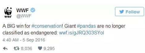 世界自然基金會(huì)(WWF)馬上在推特上公布了這一好消息: