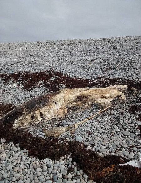 起初,這3具尸體上滿是殘渣碎屑,并且散發(fā)著惡臭,因而人們不愿走近查看,從而無法辨認它們。約3個月后,70歲的農(nóng)場工人科林·弗勞爾(Colin Flower)仔細查看尸體后發(fā)現(xiàn)它們竟然是北極熊。他說:“一開始,它們就是一大塊灰色物體,什么也不像。就算獸醫(yī)來看了也無法下結(jié)論,F(xiàn)在,它們身上的灰色覆蓋物被吹走了,至少我是這么認為的,白色的毛皮顯現(xiàn)了出來!彼硎疚ㄒ挥忻さ暮Q笊锞褪潜睒O熊。